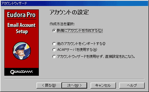 Eudora 4.0を新規に設定する方法について説明します。