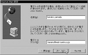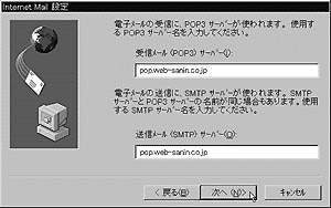 送信メール(SMTP)サーバ(O) : メールサーバ名pop.web-sanin.co.jpを半角で入力します。