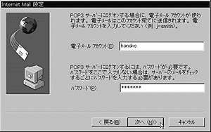 - 電子メールアカウント(E) : お客さまのIDナンバーを半角で入力します。