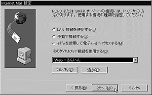 モデムを使用して電子メールへアクセスする(M)の場合 :