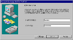 - インターネットメールサーバ用のメールボックスアカウント名とパスワードを入力します。