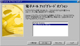 - 〔Outlook メールの選択〕で〔いいえ〕を選択した場合、〔電子メールアップグレードオプション〕が表示されます。