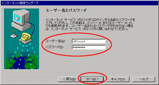 - ユーザー名(U)とパスワード(P)を入力して、次へ(N)をクリックします。