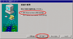 - PPP(Point to Point プロトコル)(P)をチェックして、次へ(N)をクリックします。