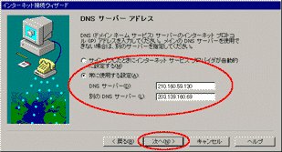 - 常に使用する設定(A)をチェックしてDNSサーバーを入力し、次へ(N)をクリックします。
