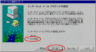 - いいえ(O)をチェックして、次へ(N)をクリックします。