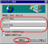 ダイヤルアップネットワークのWeb−さんいんへの接続が自動的に起動し、接続画面が表示されます。