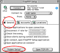 - Generalタブをクリックして、Modem Setupをクリックします。