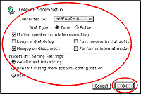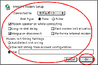 | Modem Init String Settingsの設定は、モデムによって異なる場合があります。初期化コマンドを入力する必要があるモデムの場合は、Useをチェックして、初期化コマンドを入力します。モデムのマニュアルをご覧ください。 |