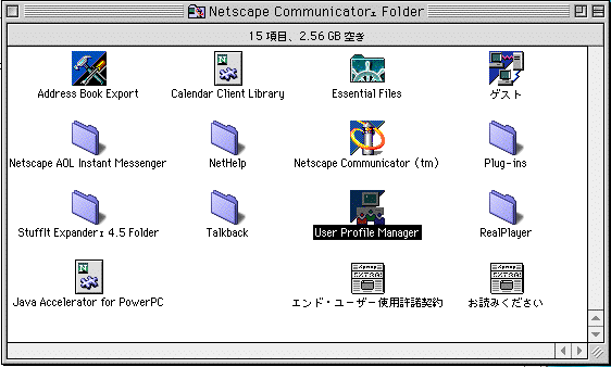 - [Netscape Communicator Folder]の中にある[User Profile Manager]をダブルクリックします。
