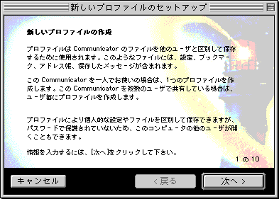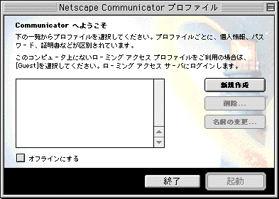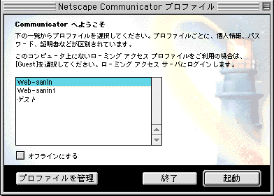 次回からNetscape Communicator を起動すると、プロファイル選択画面を表示します。