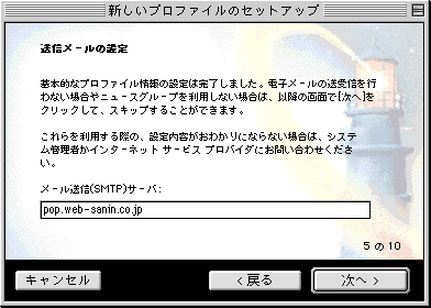 - [メール送信(SMTP)サーバ]には、pop.web-sanin.co.jpを半角で入力します。