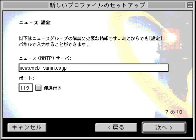 - [ニュース(NNTP)サーバ]には、news.web-sanin.co.jpを半角で入力します。