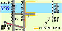 ROUTE OF THE KAITENMA BOATS AND VIEWING SPOTS(MATSUE/ADAKAYA)
