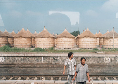 また、長春とハルピン市は特急列車で約4時間、列車は中国東北地方の大平野を北に向かって進んでいく。鉄路は広軌複線(二車線)である。主要駅で反対方向の列車が停車している場面に出合うことが多い。一般の列車(車両)は、硬座席で冷暖房設備は皆無である。若い男たちは、裸になって窓を開けて暑さを凌いでいる。