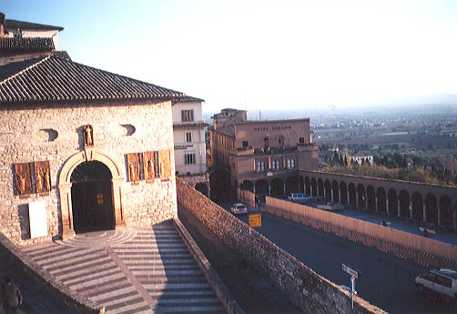 アッシジは、イタリア中心部アペニン山脈の西側に位置する小さな街である。山の中腹、石畳の道路を登って行くとサンフランチェスコ大寺院がある。