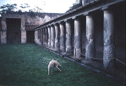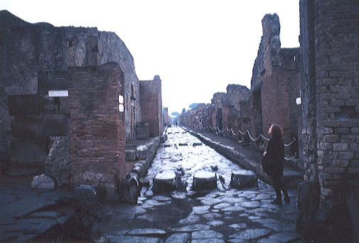 ポンペイは、西暦79年8月24日(20世紀近く前)ヴェスヴィオ火山の大噴火によって壊滅させられた悲しい歴史・遺跡の街である。それは、夏の暑い盛りであったという、突然大音響とともに大爆発を起こし、その火山礫が三日三晩にわたって降り注ぎ、人口2万人の古代都市が火山灰の下に埋没してしまった。